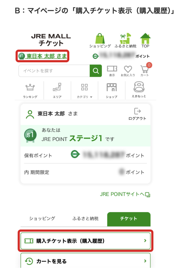 ①スマートフォンで「JRE MALL チケット」にログイン